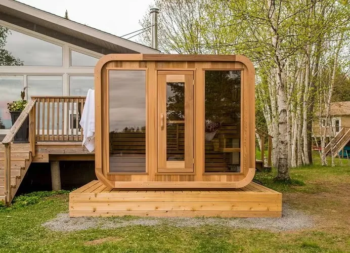 The project of housing construction is equipped with outdoor cube sauna. The outdoor sauna rooms with unique design in this project are supplied by our company.